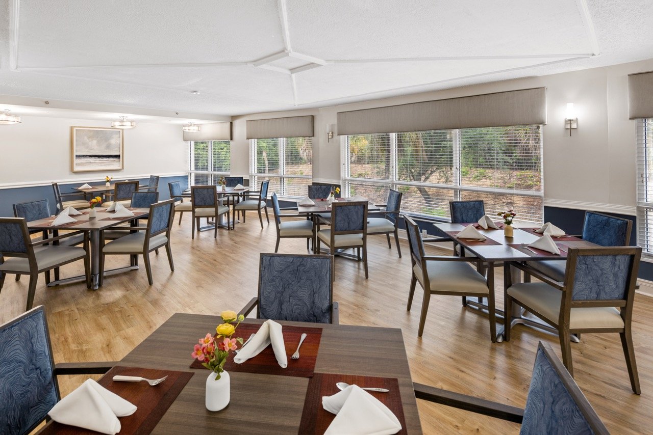 Our dining experiences are some of the most important parts of the day, offering more than just a meal, but a moment to connect and enjoy. Our chef-prepared, restaurant-style dining features fresh, seasonal ingredients and a choice of delicious and nutritious menu options to meet each resident’s preferences and abilities. Our compassionate team is trained to engage and support each resident to ensure a pleasant experience and apply tools as needed to assist, like our “dining on the run” program, adaptive utensils, modified diets, and dignified prompting and cues.